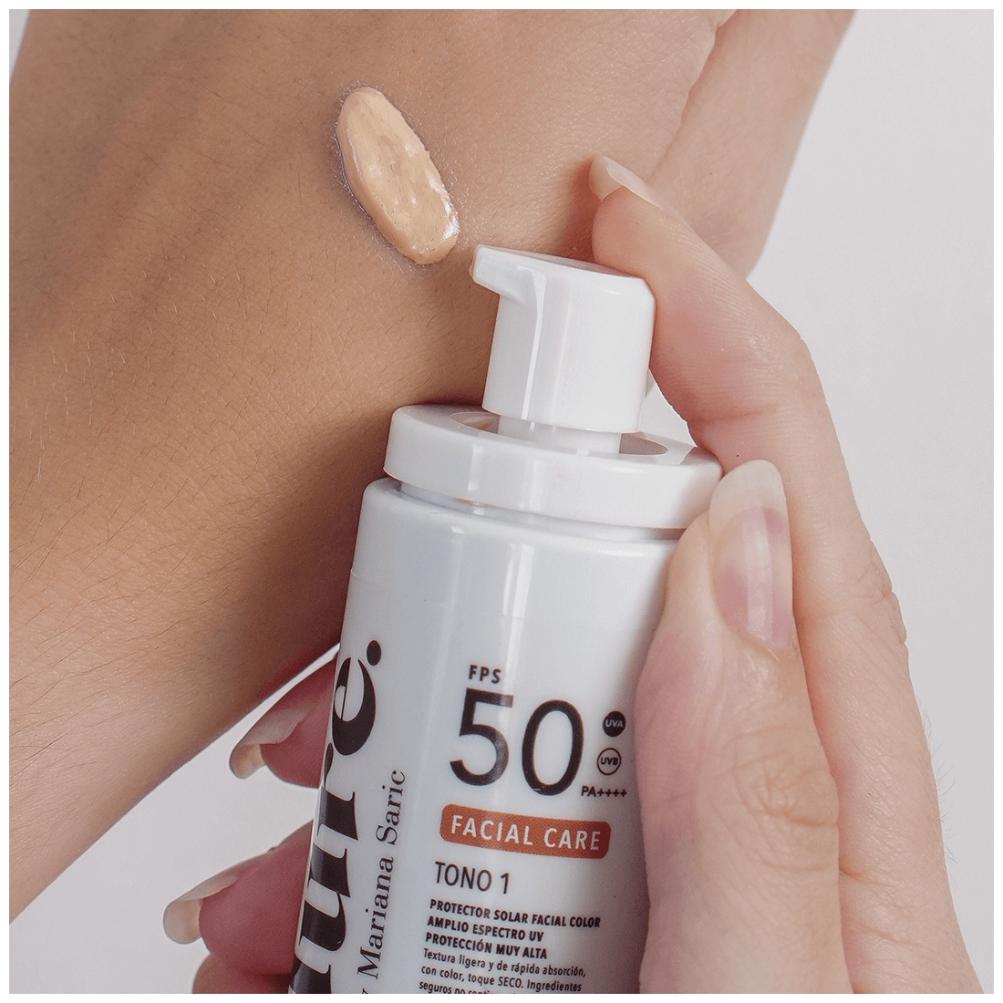 Formulado con ingredientes de alta calidad, este protector solar facial con color, se adapta al tono de piel, disimula imperfecciones y controla el brillo. Rápida absorción. Proporciona una defensa eficaz contra los rayos UVA y UVB, evitando el envejecimiento prematuro de la piel. Su textura ligera y de rápida absorción deja un acabado radiante, ideal para el uso diario.